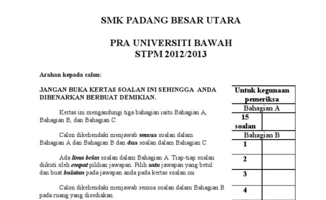 PBS untuk student pra U semester 2 2014 Saya dapat contoh ni dalam group STPM Student please do join us for more information about STPM Ade sorang member yang. Soalan Percubaan Latihan dan Nota STPM Baharu Penggal Semester 2 Dua. Yang ringkas dan mudah difahami oleh responden.