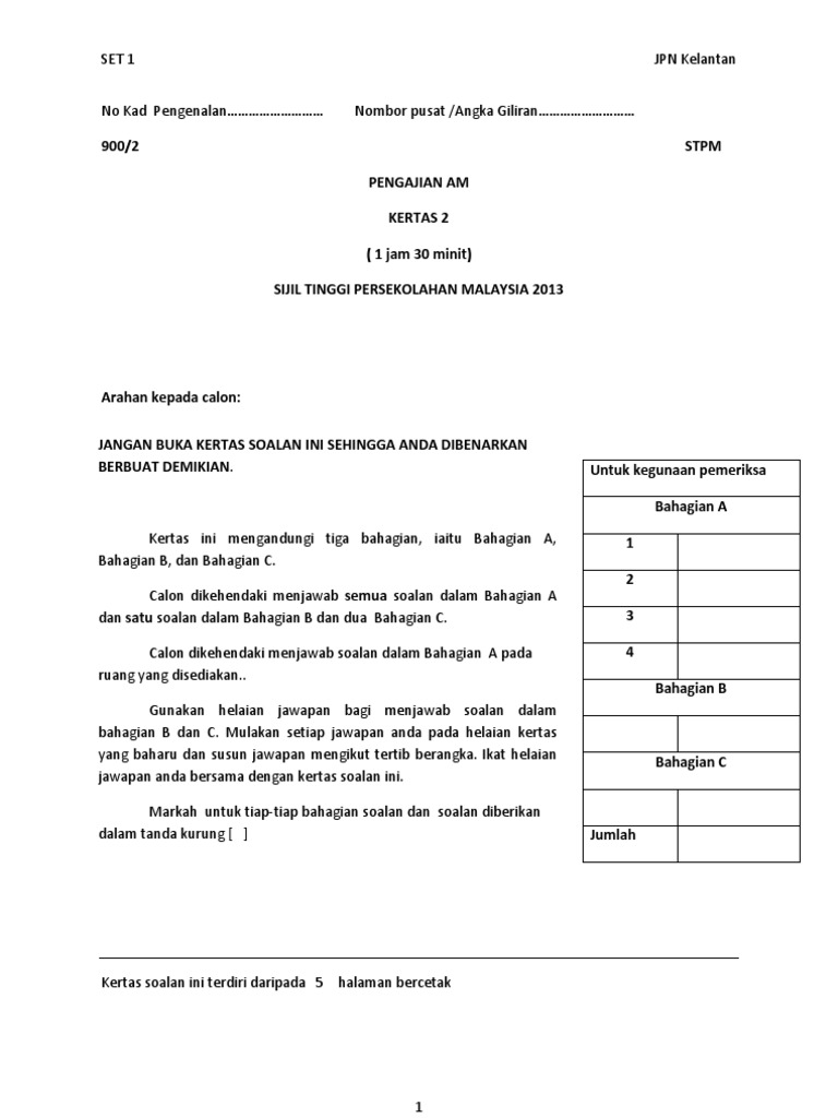 Mengandungi 3 bahagian iaitu Bahagian A. Soalan Percubaan Pengajian Am STPM Penggal 2 SMK Dato Said April 14th 2019 - Soalan Percubaan Pengajian Am STPM Penggal 2 SMK Dato Said. Menerima soalan 2 Memahami skop tugasan 3 Merancang jadual kerja 4 Mengumpul data maklumat 5.